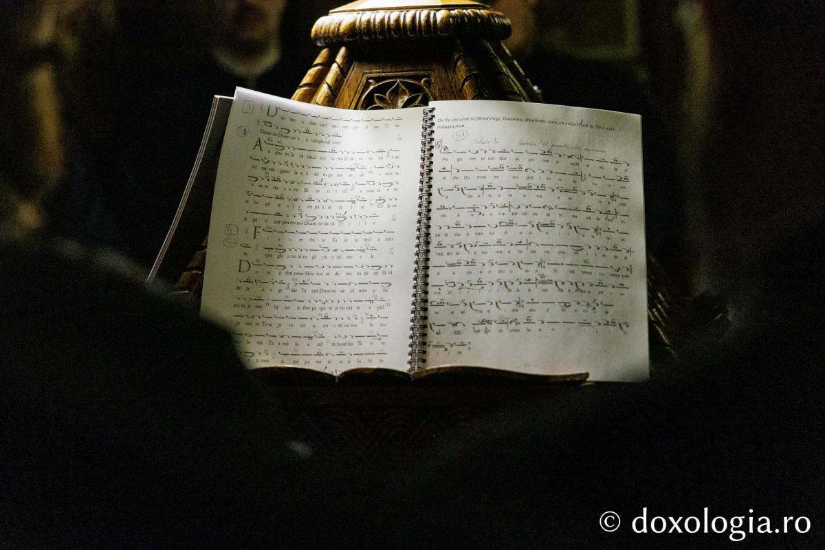 La slujba privegherii a slujit un sobor de preoți și diaconi sub protia părintelui arhimandrit Elisei Nedescu, starețul Mănăstirii „Sfinții Trei Ierarhi” din Iași, iar răspunsurile liturgice au fost date de Corul preoțesc „Apostolii” (în strana dreaptă) și, respectiv, de corul mănăstirii Copou (în strana stângă).